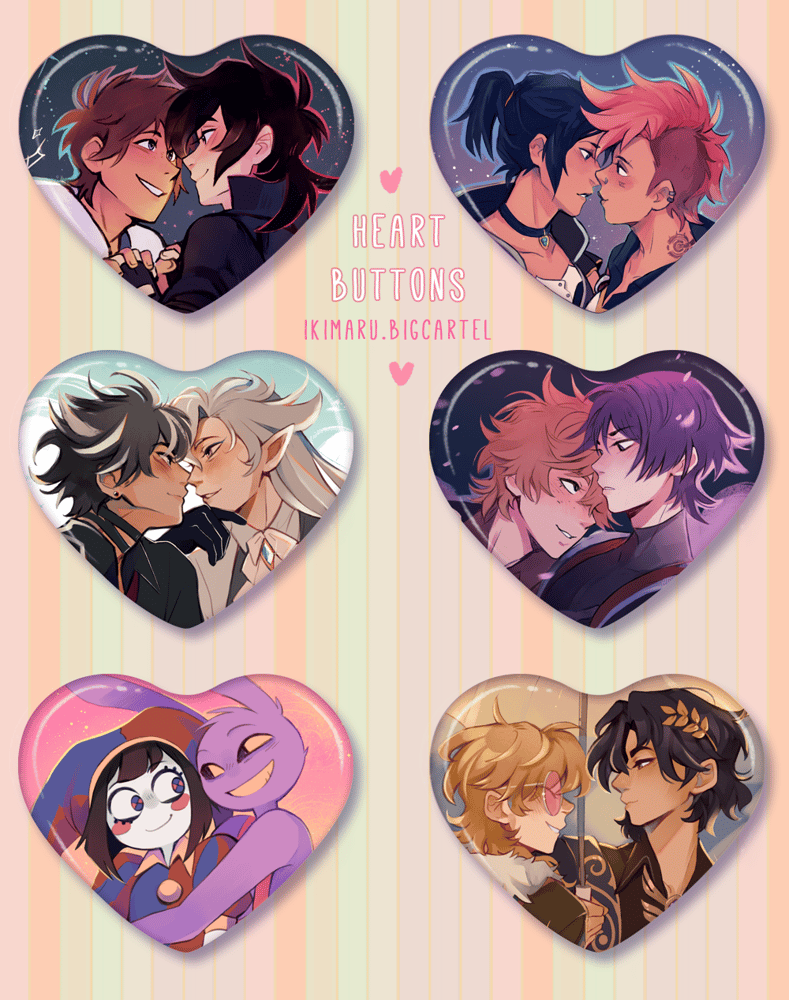 Approx 2" (50mm) heart button pins with glossy finish! (the back is tinplate)