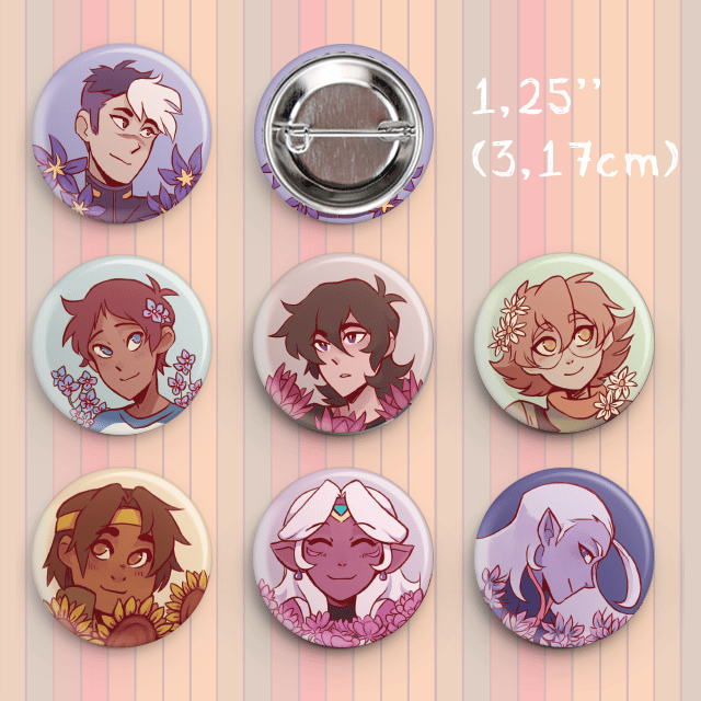 Shiro: clematis, Keith: protea, Lance: forget me not, Pidge: daisy, Hunk: sunflower, Allura: peony, Lotor: rhododendrus